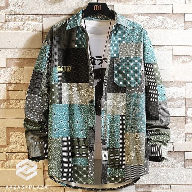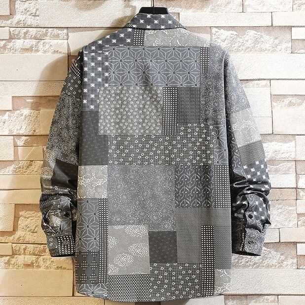 メンズ サイズ豊富 パッチワーク柄 長袖 シャツ [gg-1891]