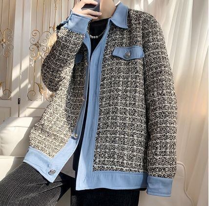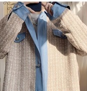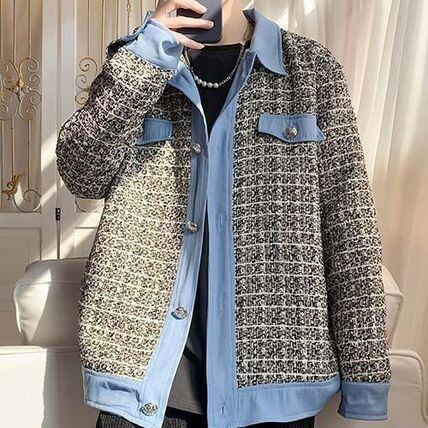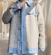 シャツ ジャケット ツイード 切り替え カジュアル 韓国 [gg-1911]