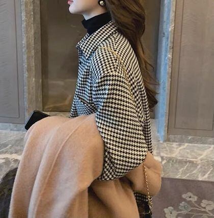 千鳥格子 長袖 シャツ カジュアル 羽織 韓国 [gg-1915]