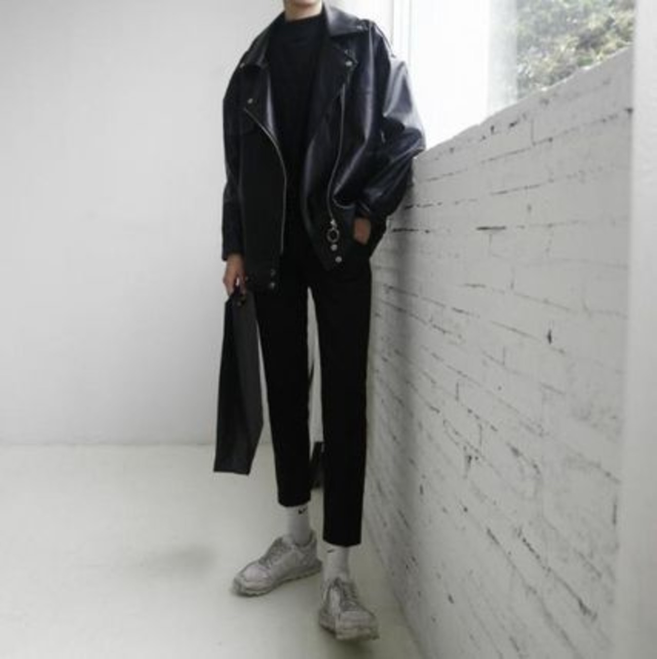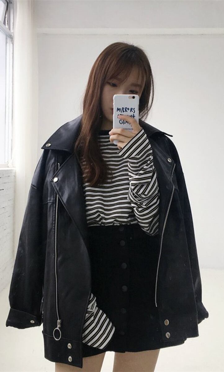 PUレザー ライダースジャケット バイカー 無地 韓国 [gg-1919]