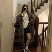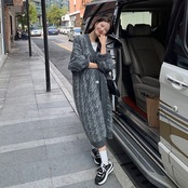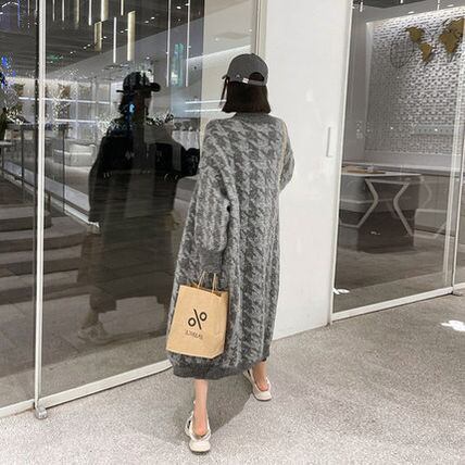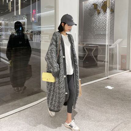 ロングカーディガン ニット 千鳥格子 カジュアル ゆったり 韓国 [gg-1925]