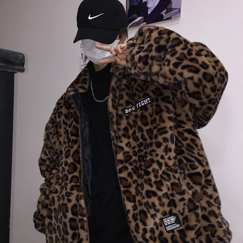 ファージャケット もこもこ ヒョウ柄 ブルゾン フェイクファー [gg-1930]