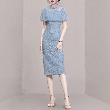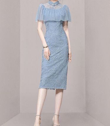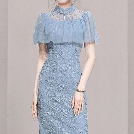 パーティドレス ワンピース ひざ下丈 タイト シアー ハイネック [gg-1936]