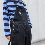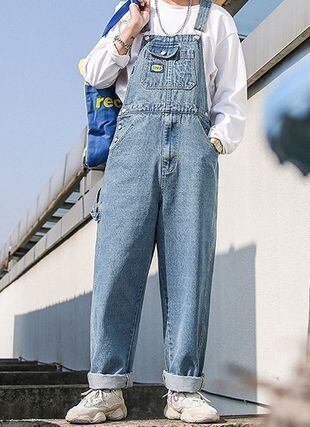 オーバーオール デニム ワイドパンツ カジュアル シンプル [gg-1943]