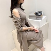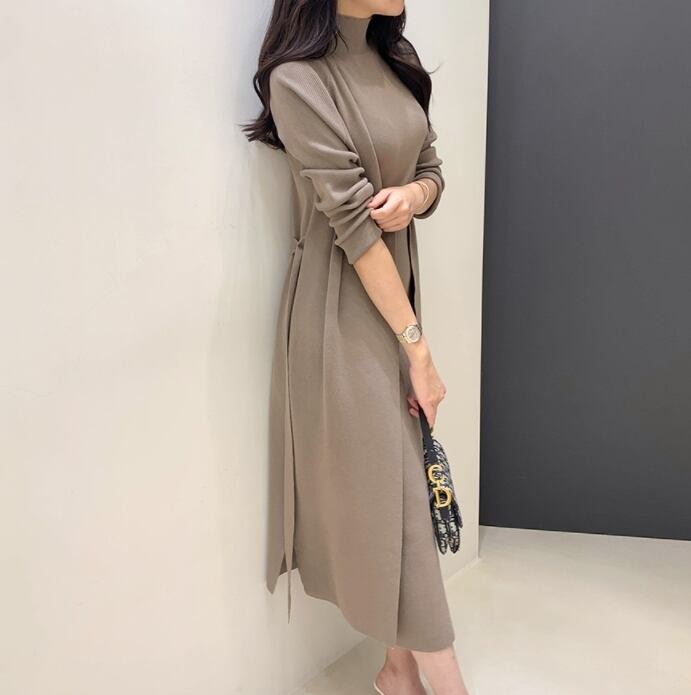 ニットカーディガン&タートルネックワンピース セット [gg-1952]