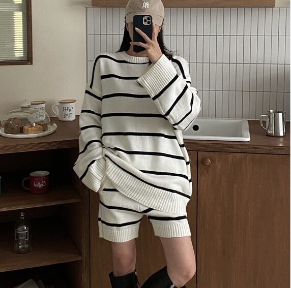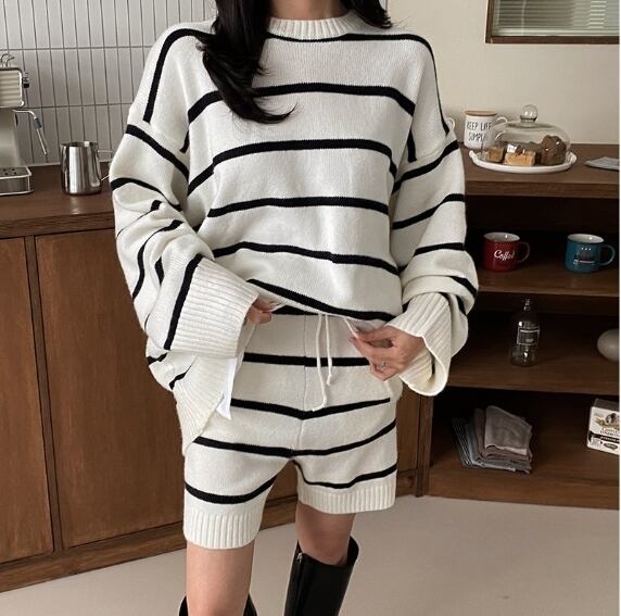デイリー 長袖ニット+ショートパンツ セット [gg-1958]