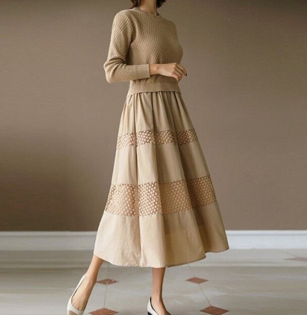 デイリー ワッフル 配色ニット ワンピース [gg-1966]