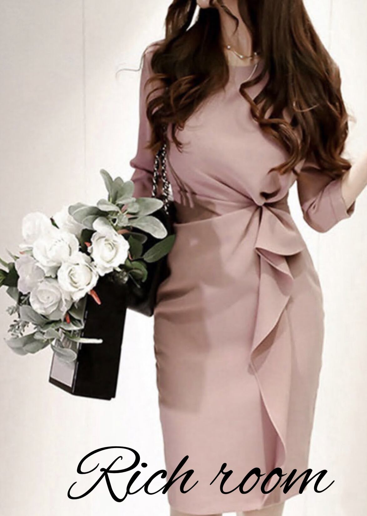 パーティードレス タイト ワンピース ひざ丈 フリル 結婚式 [gg-2034]