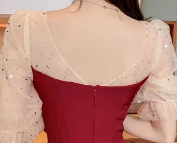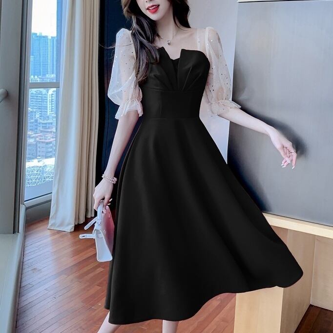 ワンピース ランタンスリーブ ラメ ドレス ひざ下丈 韓国系 2色 [gg-2035]