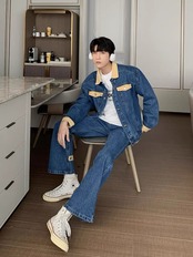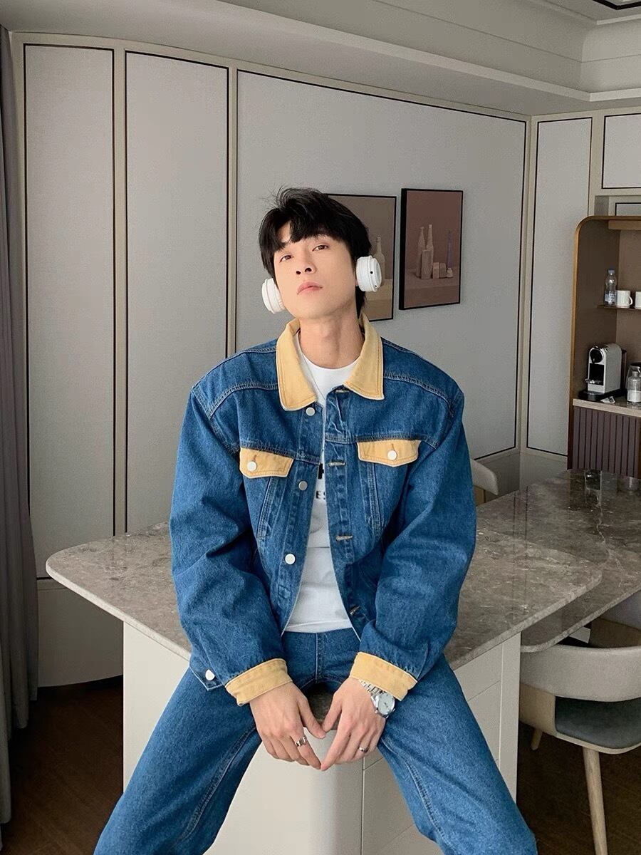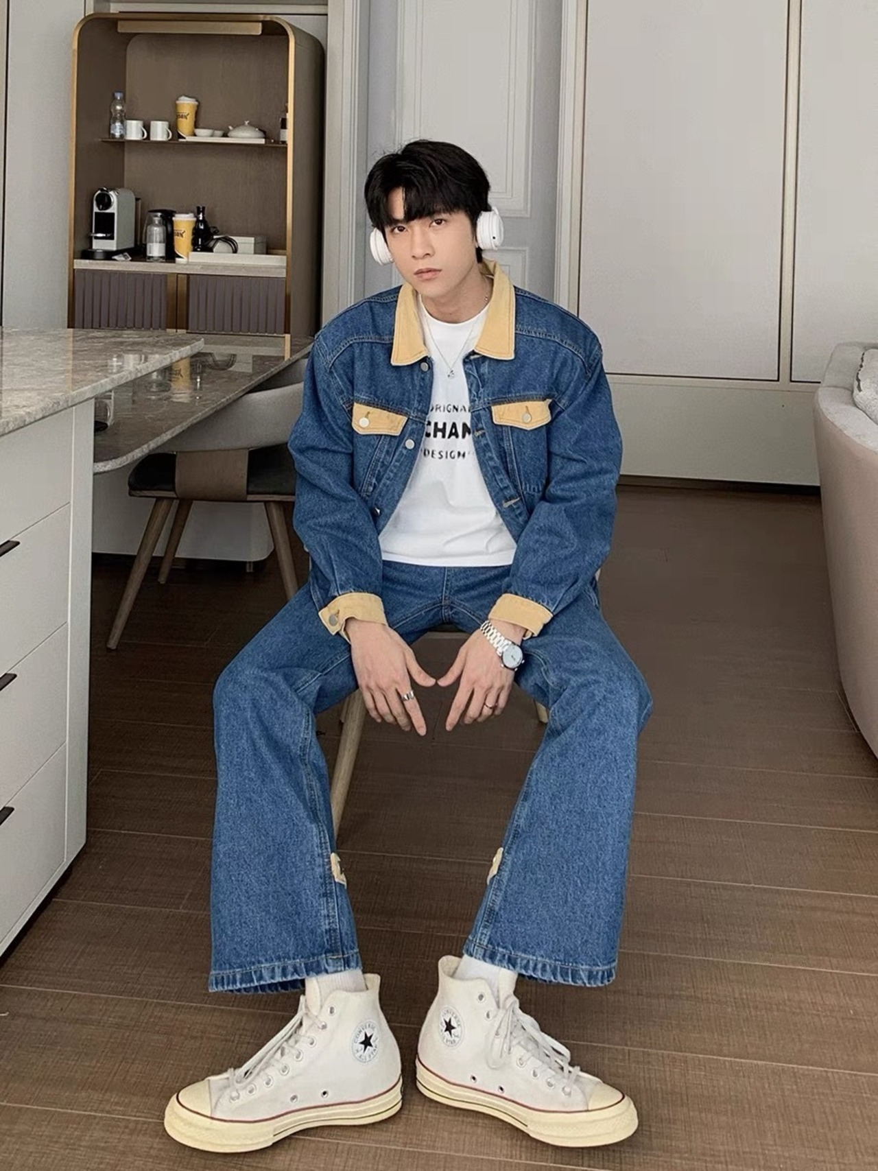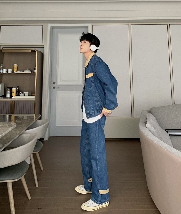 デニム セットアップ ジャケット パンツ 切替 韓国系 新作 [gg-2044]