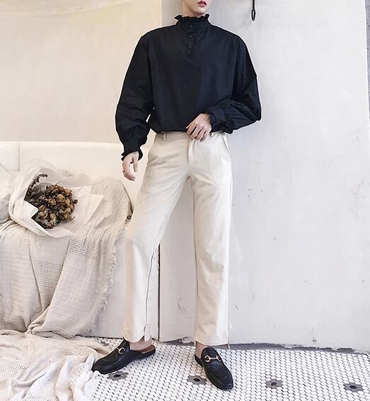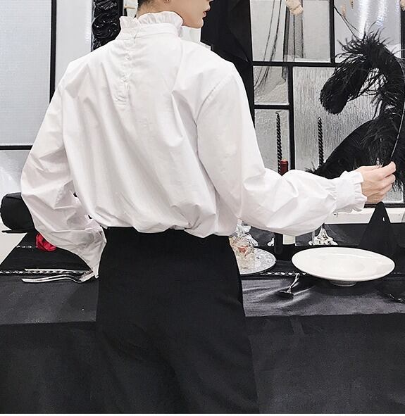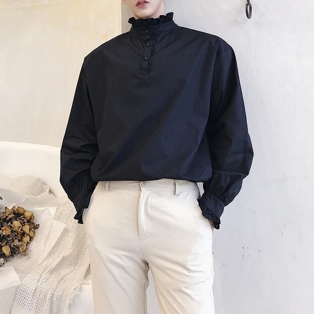 全2色 メンズ スタンドカラー 長袖シャツ フリル 韓国 [gg-2051]