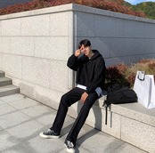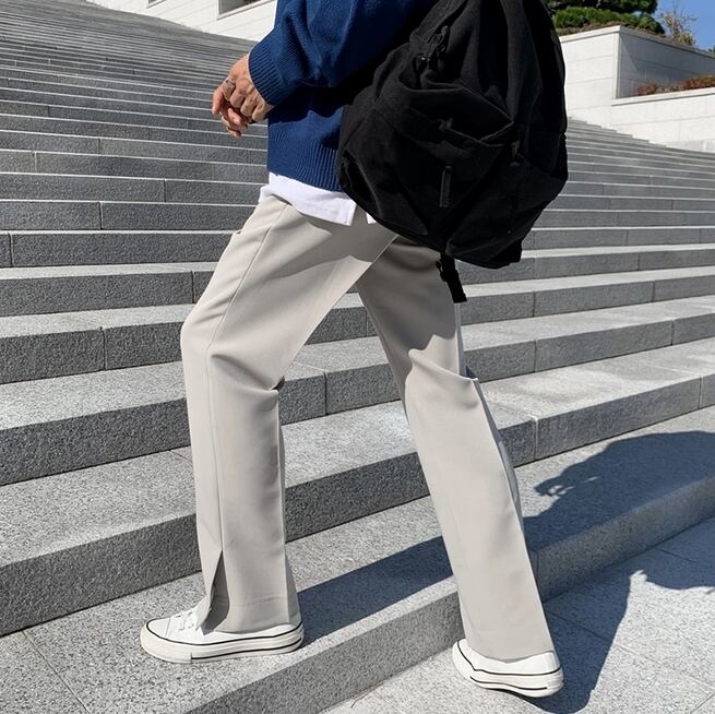 スリット フレア スラックス メンズ 韓国 センタープレス [gg-2054]