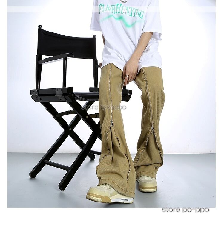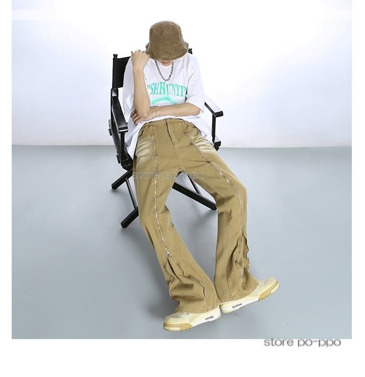 フロントジップ フレア ジーンズ デニム ストリート ワイルド [gg-2056]