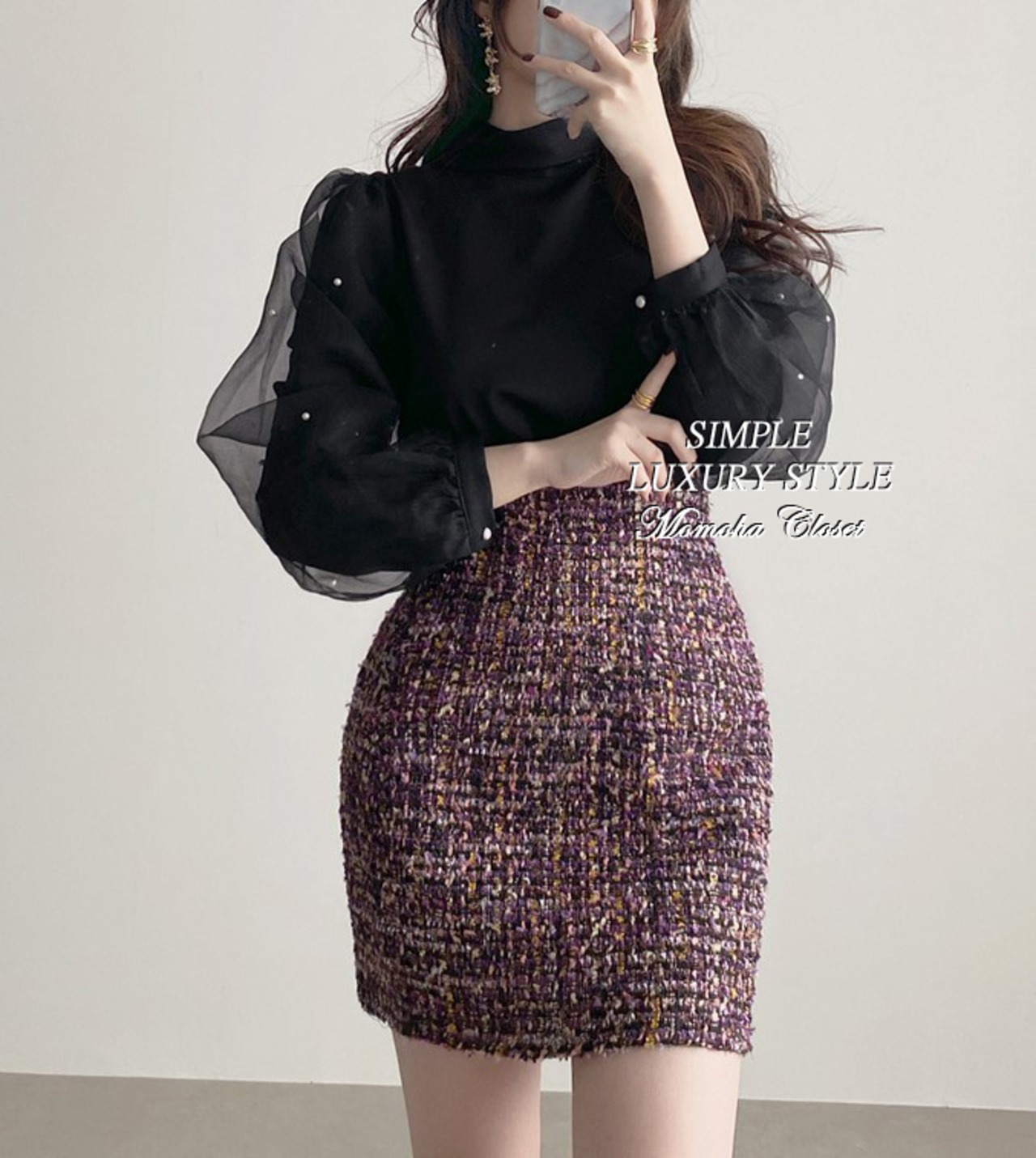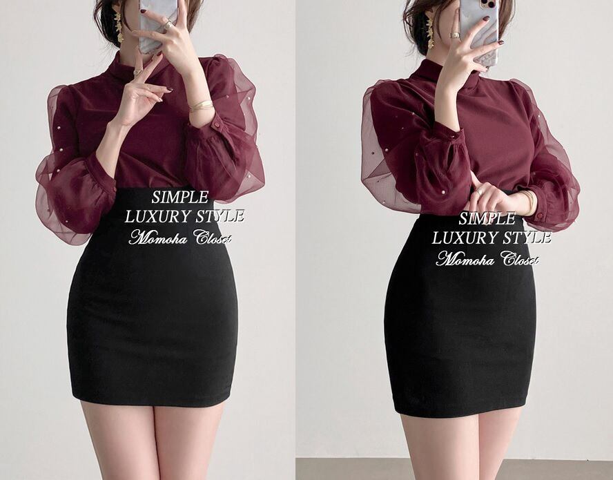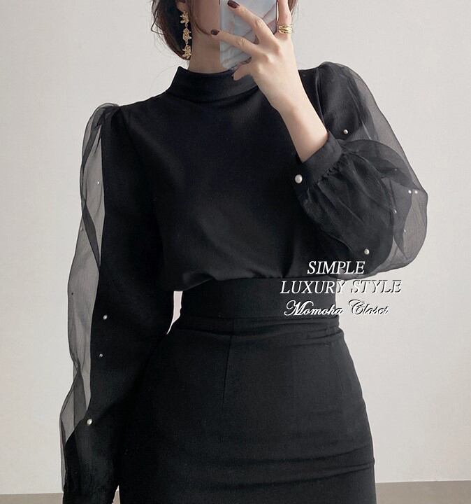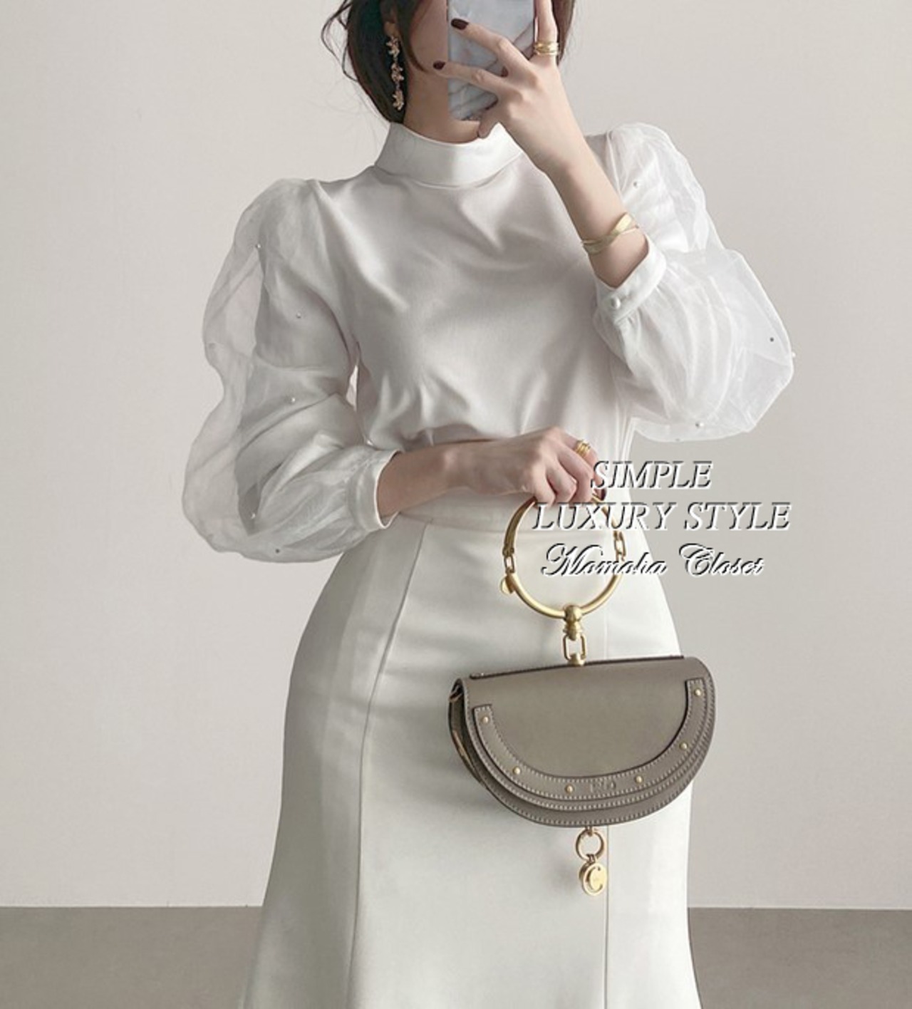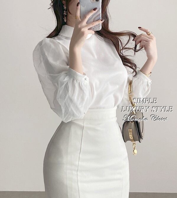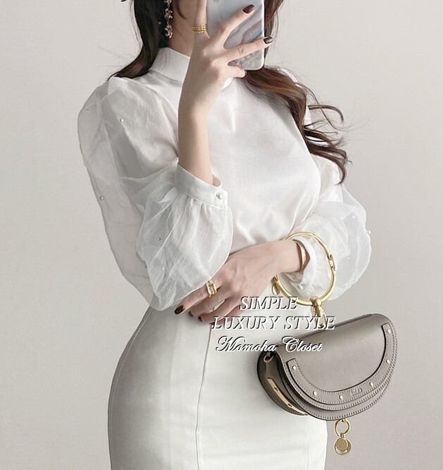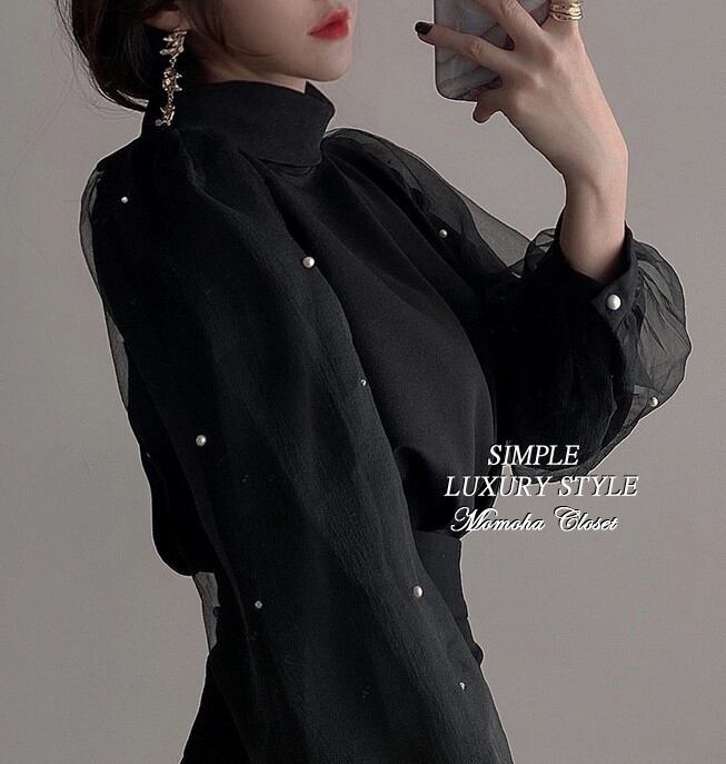 パール シフォン パフスリーブ ブラウス 全2色 [gg-2060]