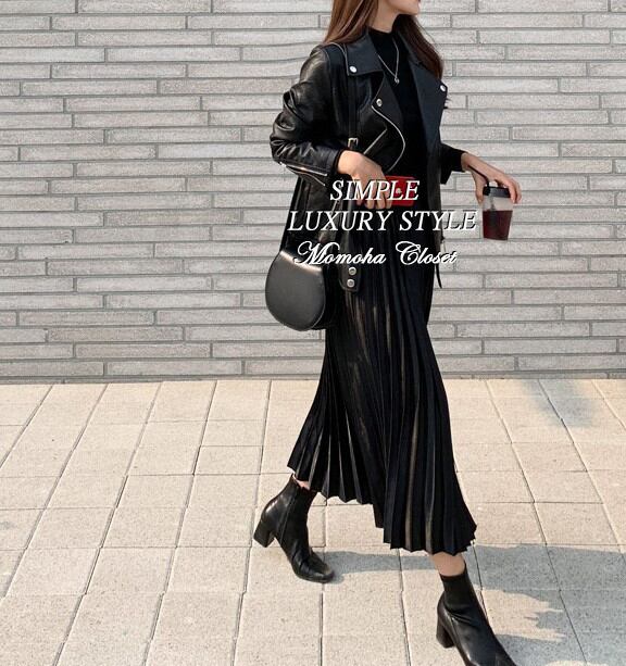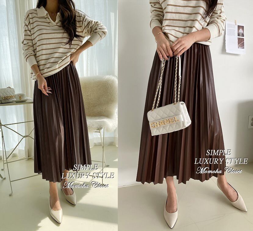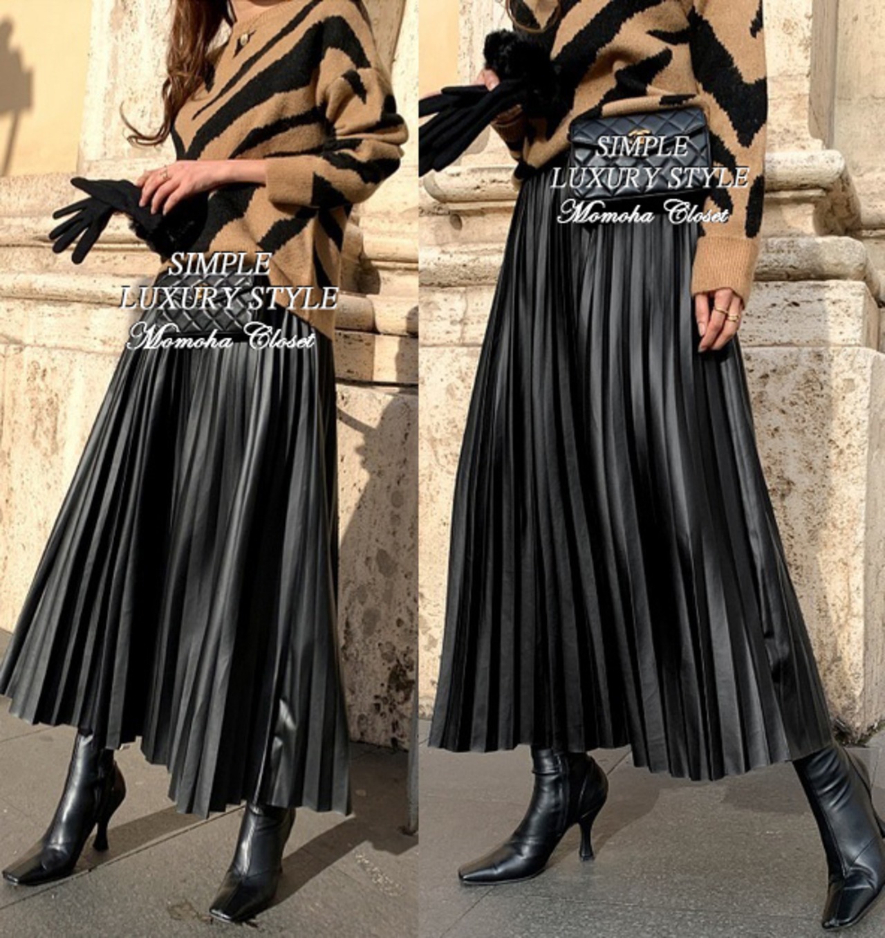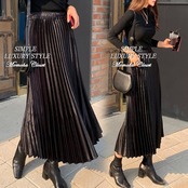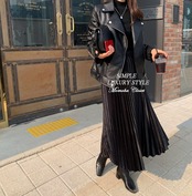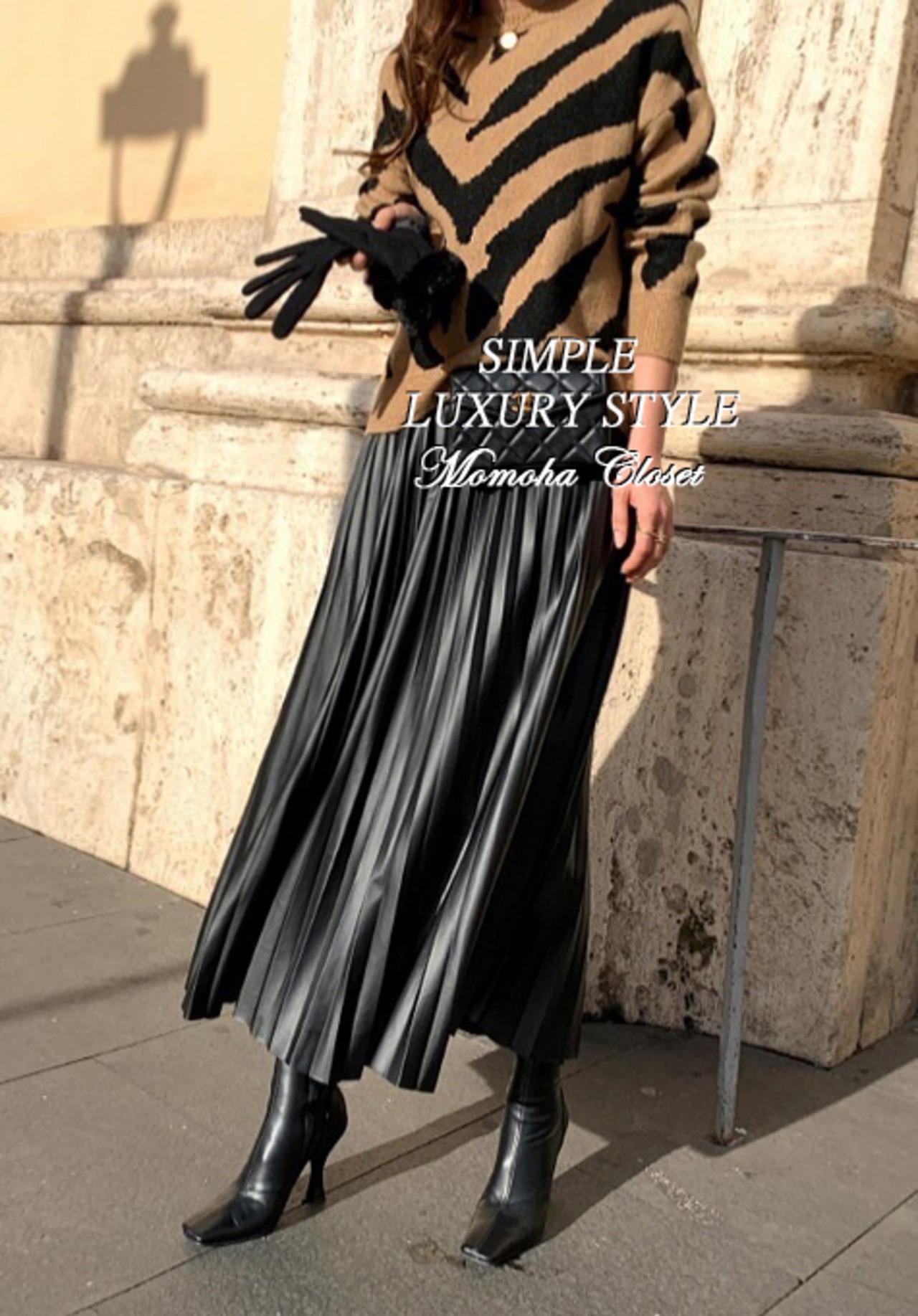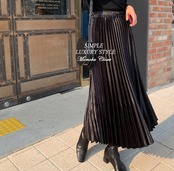 スタイリッシュな レザー プリーツ ロング スカート [gg-2063]