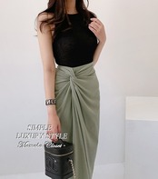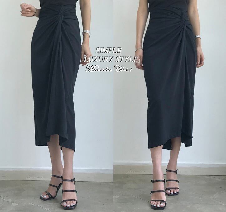 お洒落な ラップ絞り ミモレ スカート 全2色 [gg-2070]
