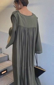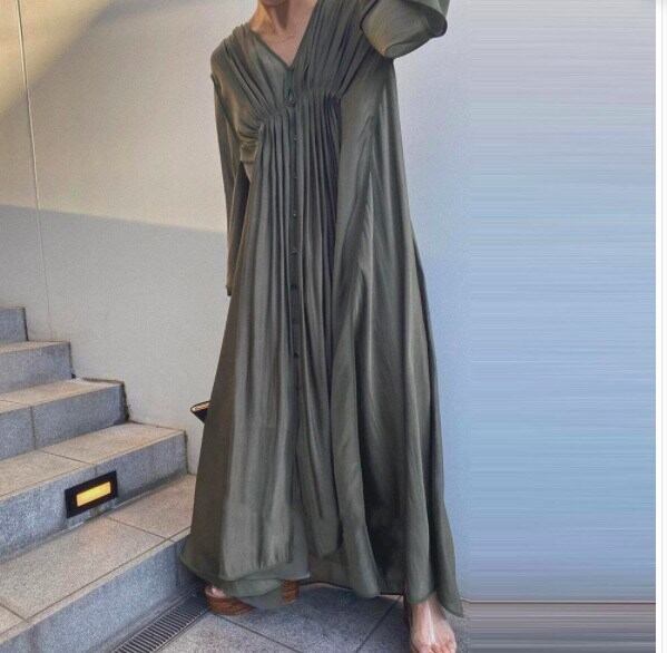 ワンピース ドレス ロング丈 無地 長袖 ゆったり 大人可愛い [gg-2071]