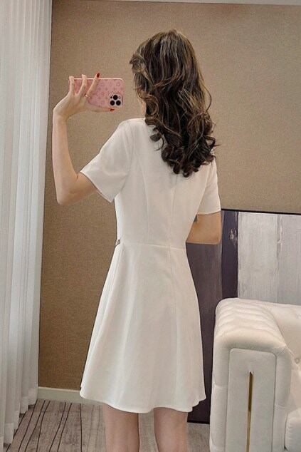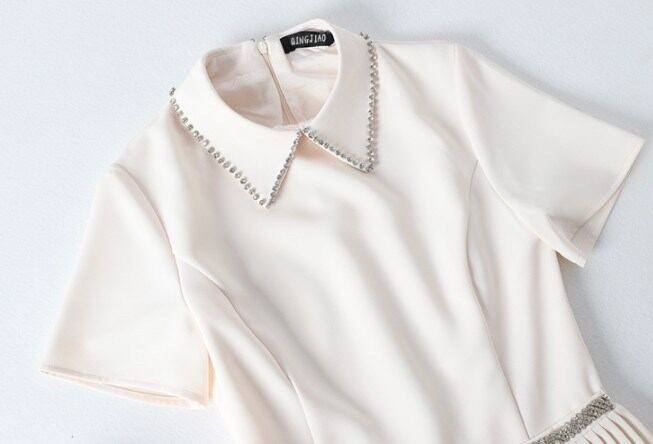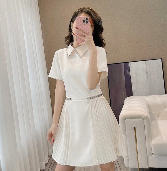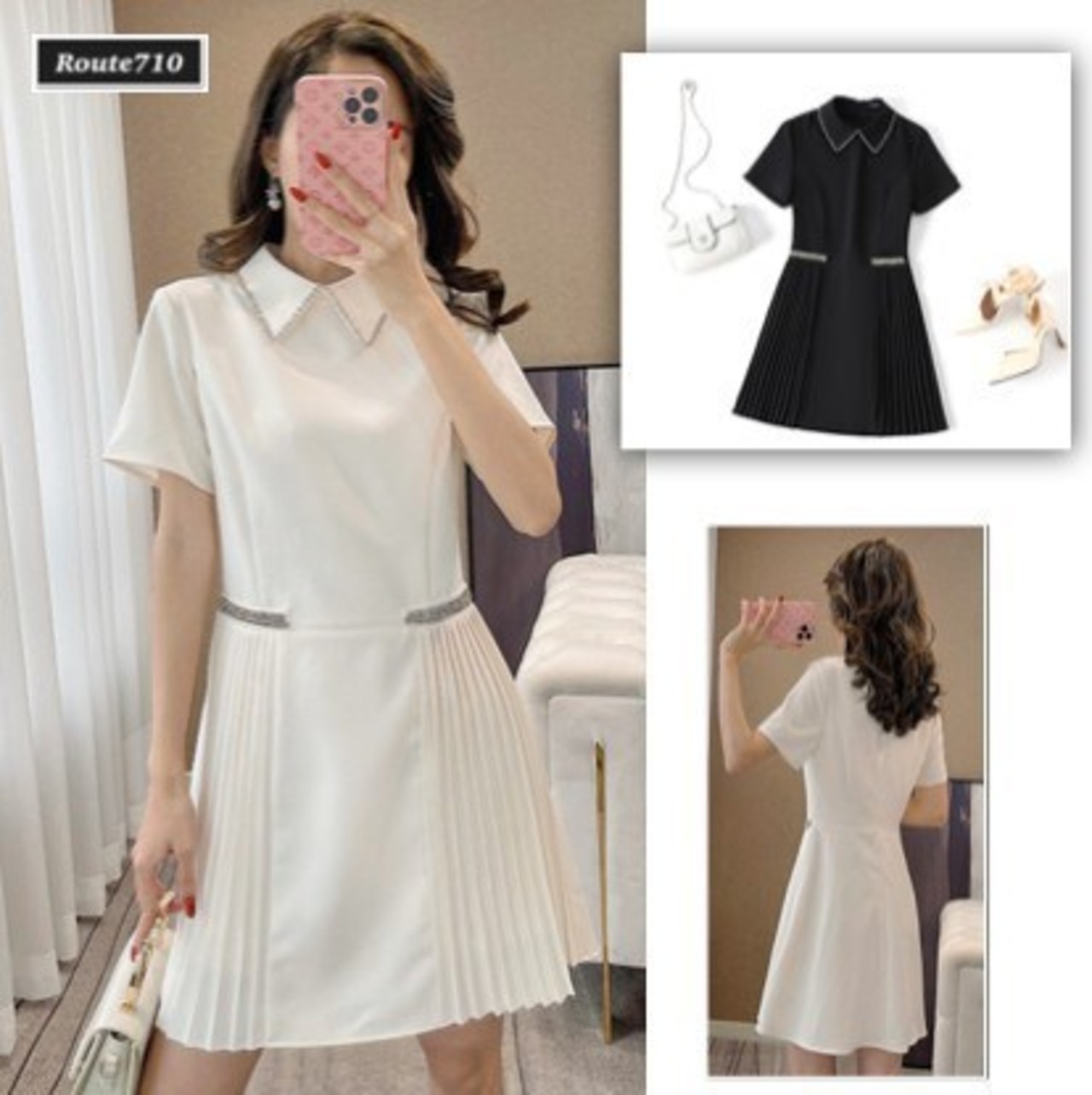 ドレス ワンピース プリーツ 襟付 無地 半袖 エレガント 上品 [gg-2072]