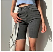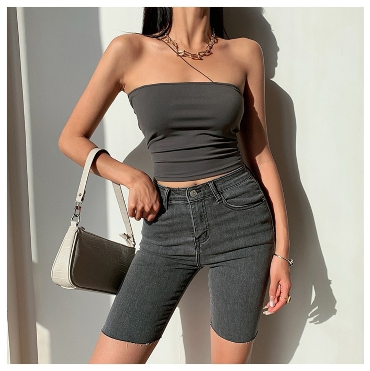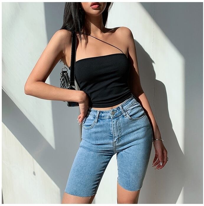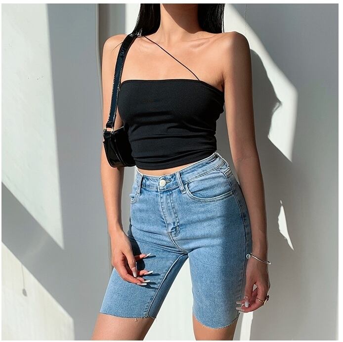 ハイウエスト切りっぱなしハーフストレッチデニム パンツ [gg-2091]