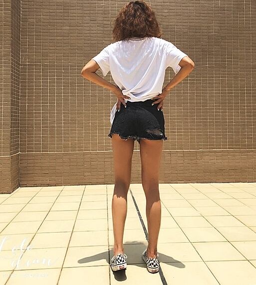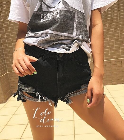 ミニ丈の裾とダメージ加工で足長効果抜群です!