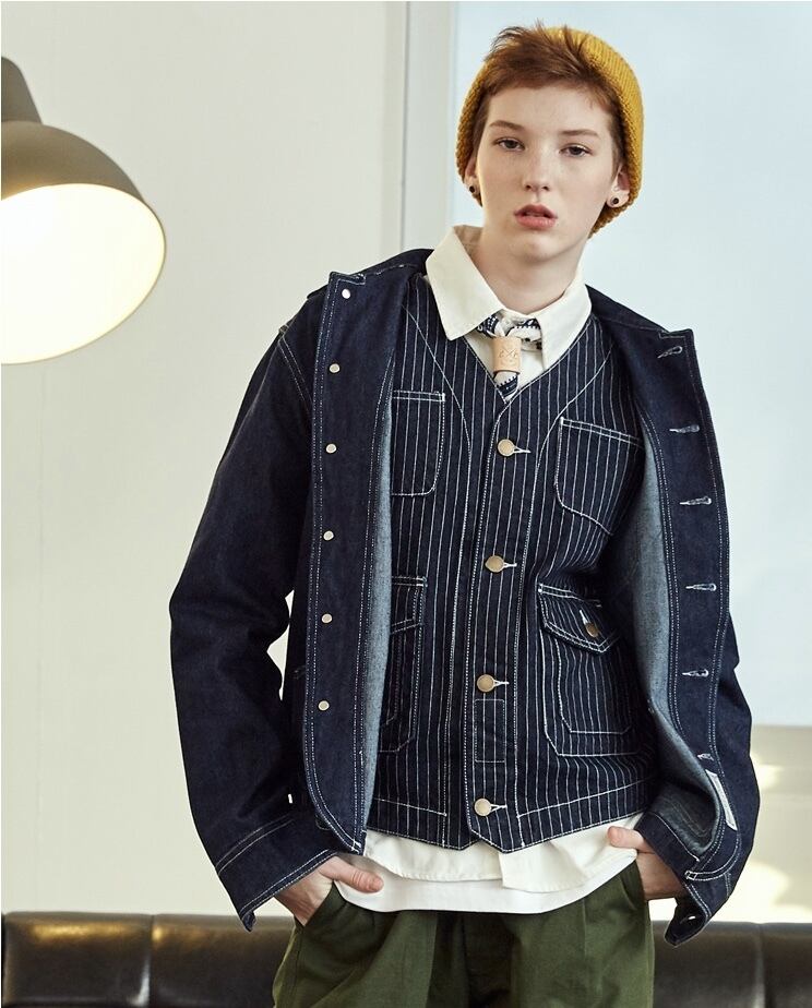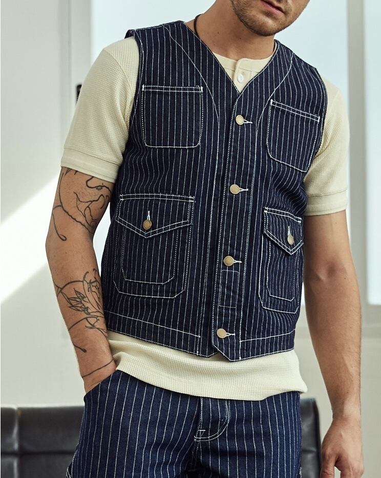 ユニセックス ストライプ デニム ベスト [gg-2110]