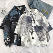メンズ 総柄 半袖 シャツ レトロ ゆったり 韓国系 [gg-2127]