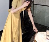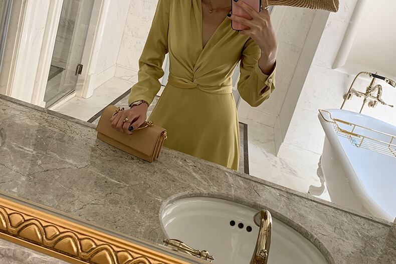 パーティードレス 二次会 ワンピース Vネック サテン 長袖 [gg-2137]