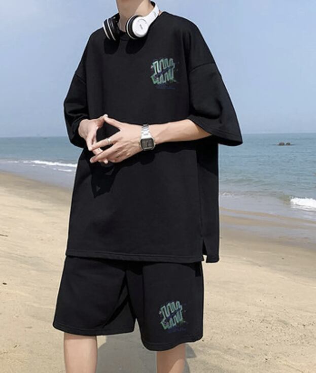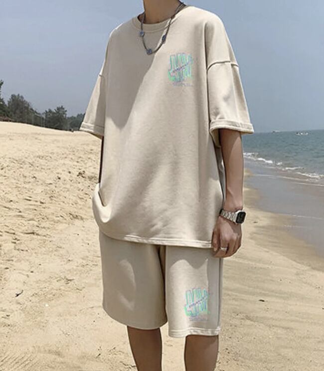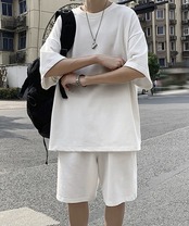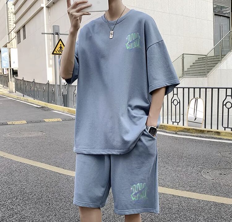 メンズ セットアップ 半袖 Tシャツ ショートパンツ 肩落ち 韓国 [gg-2143]