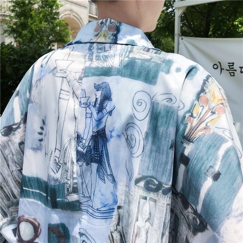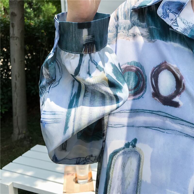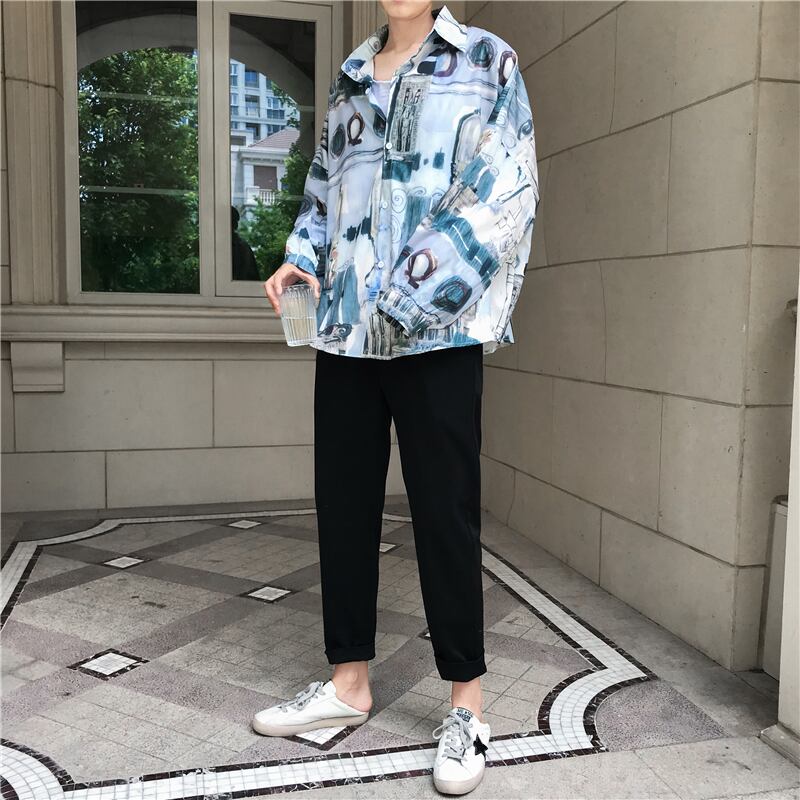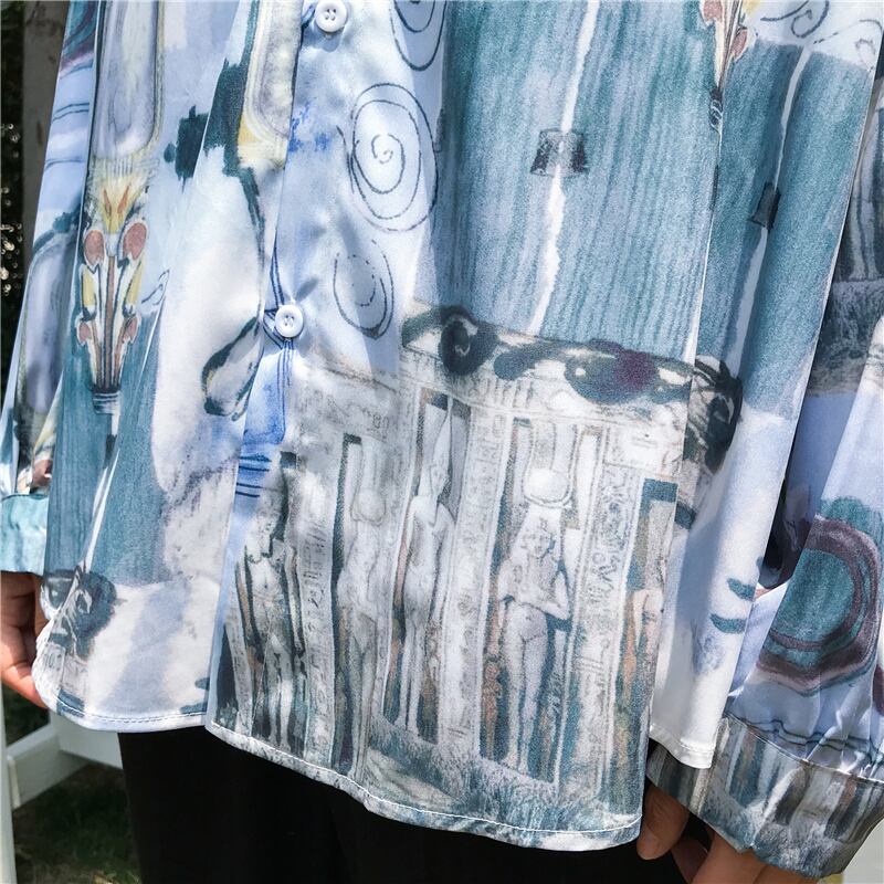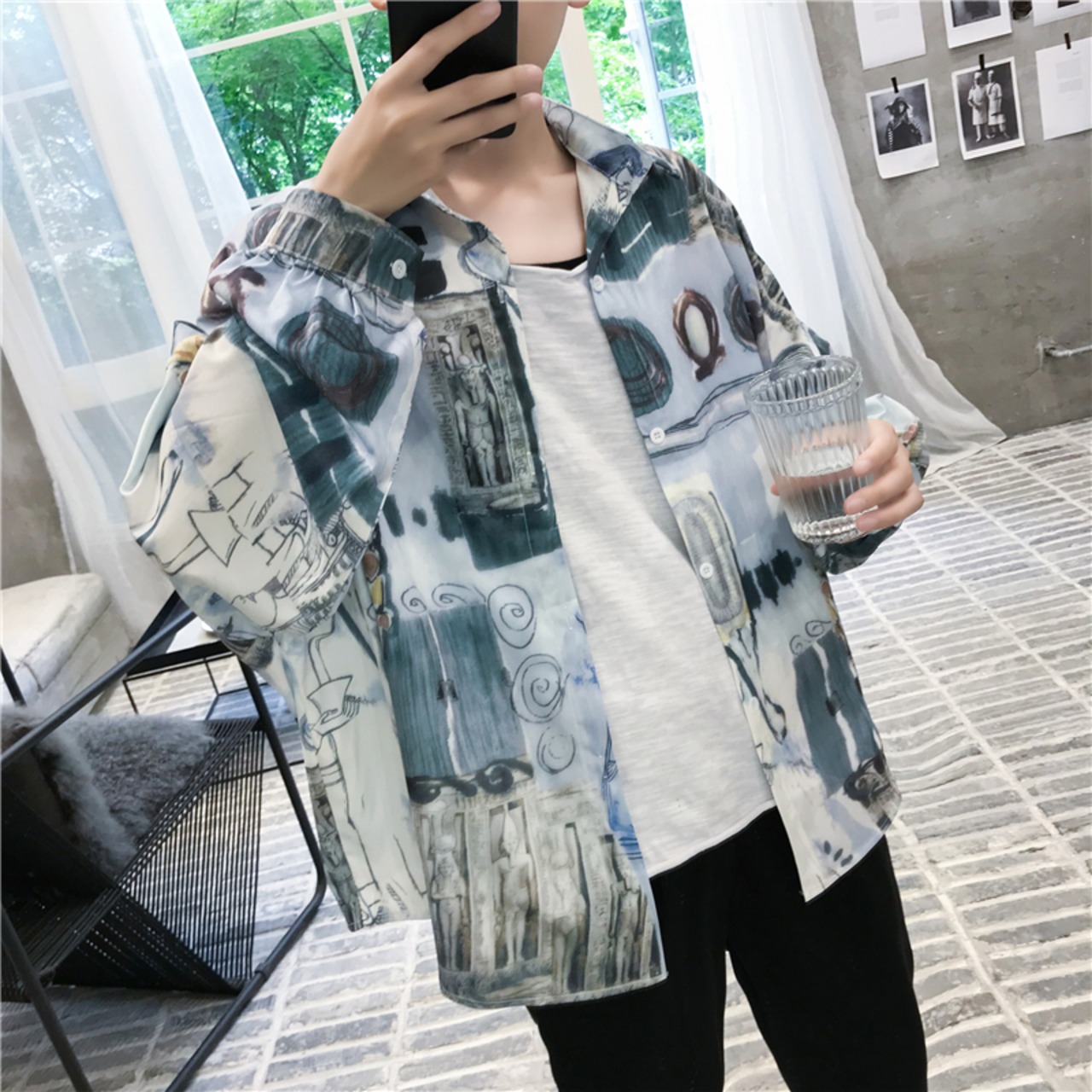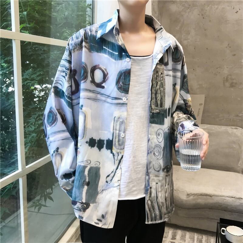 オーバーサイズ 総柄 アートプリント 長袖 メンズ シャツ [gg-2170]