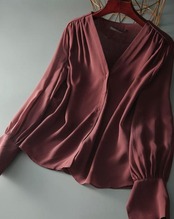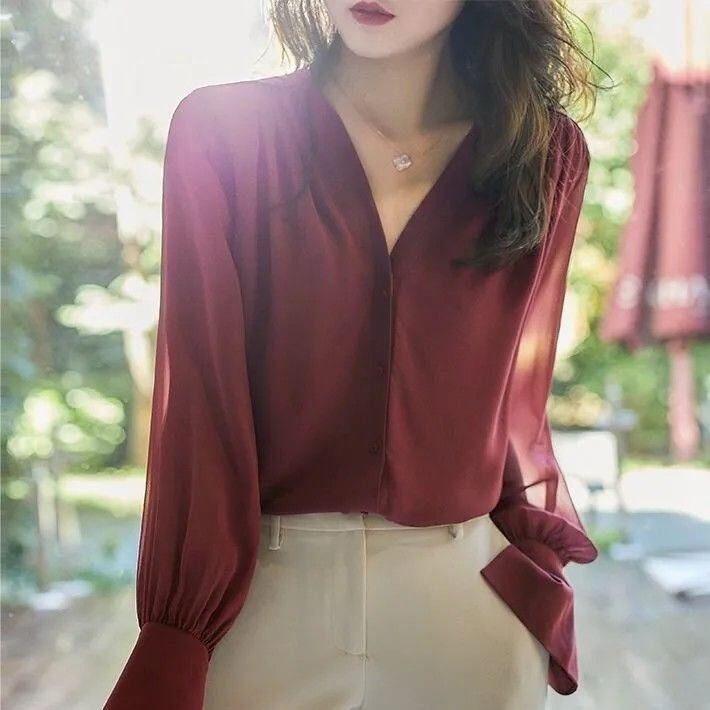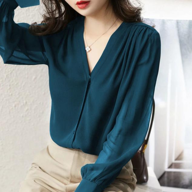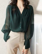 シフォン 長袖 ブラウス トップス シアー Vネック 韓国 とろみ [gg-2171]