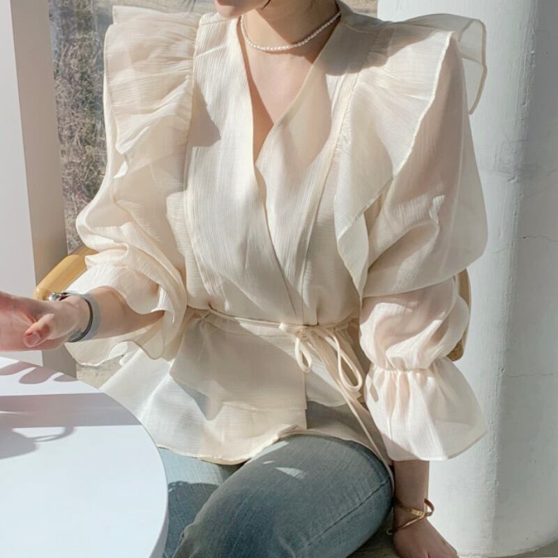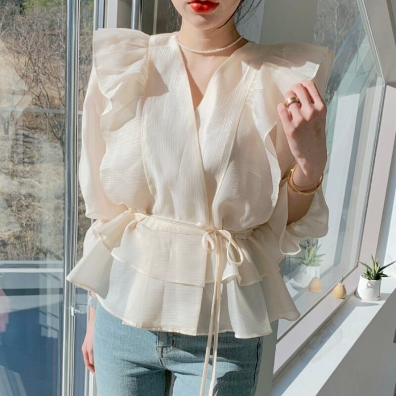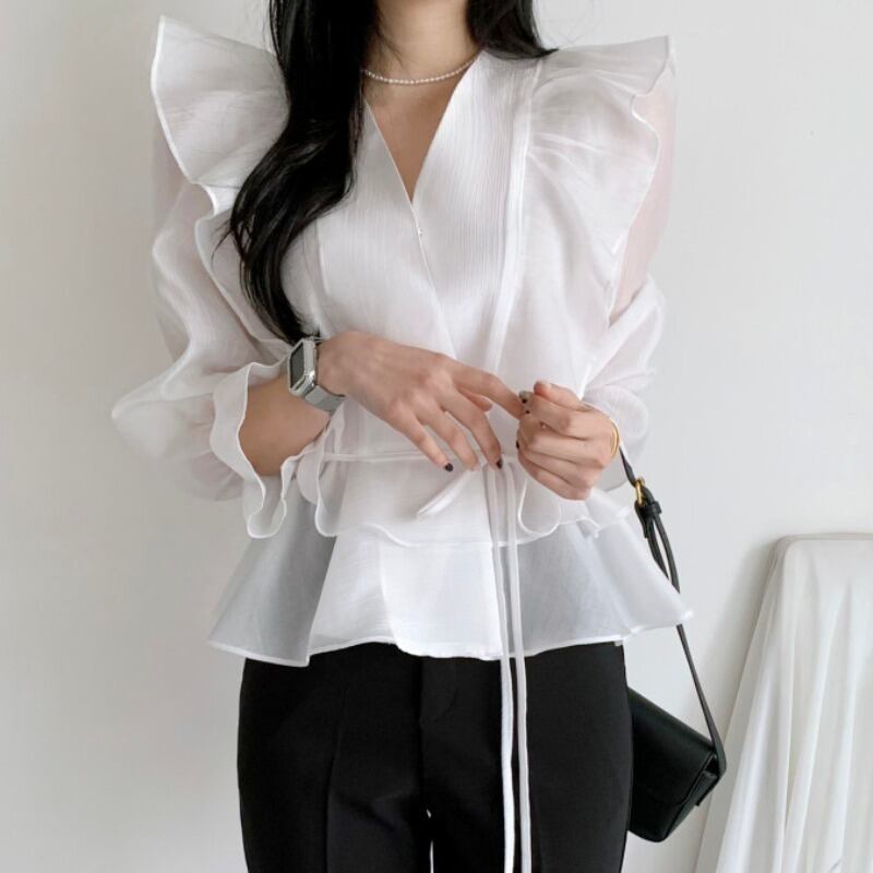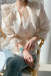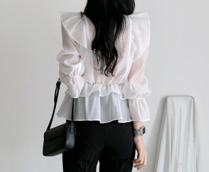 シアー ブラウス トレンド ロマンティック トップス フリル [gg-2175]