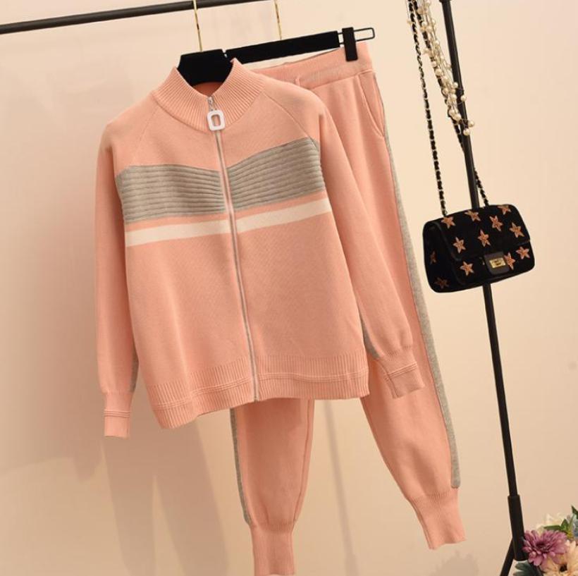 ☆ジップアップ丸首ニットカーデ&ロングパンツの2点セット☆