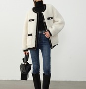 エレガント ノーカラー ジャケット コート エコ ファー 韓国 [gg-2184]
