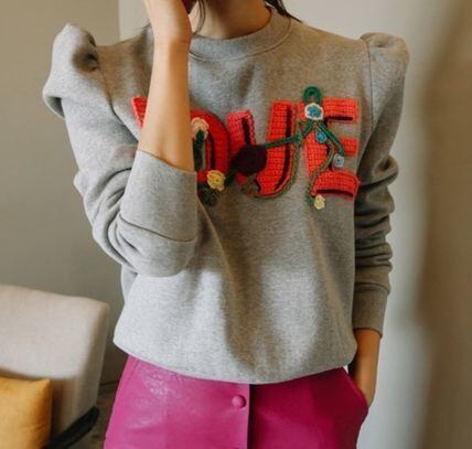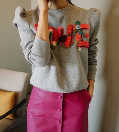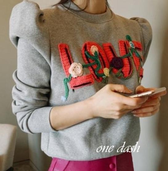 パフスリーブ 韓国系 トレーナー 裏起毛 レディス プルオーバー [gg-2187]