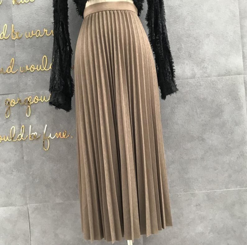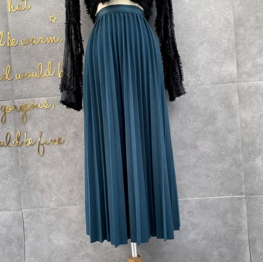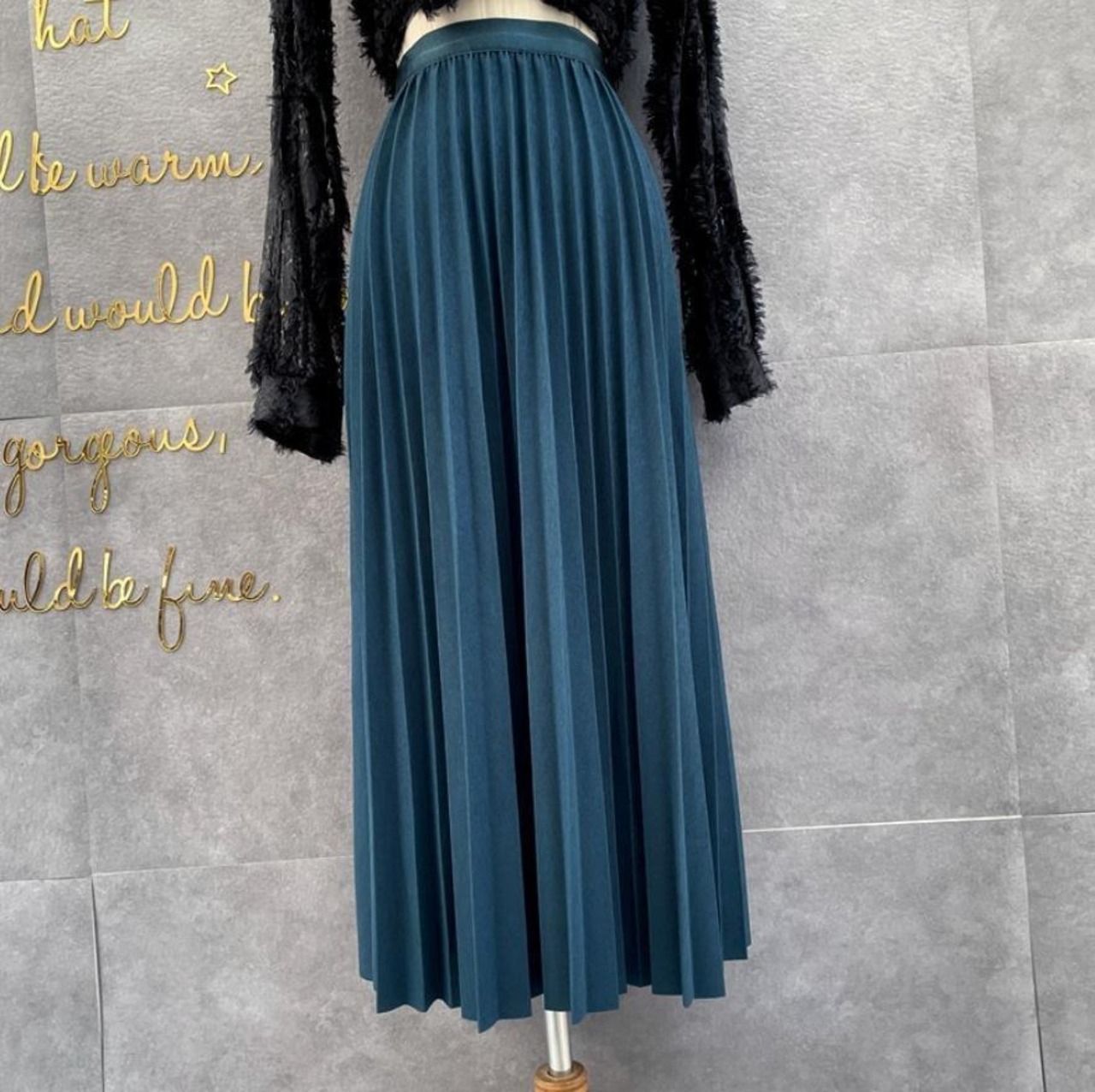 ベーシック プリーツ スカート ロング おしゃれ Aライン 韓国 [gg-2189]