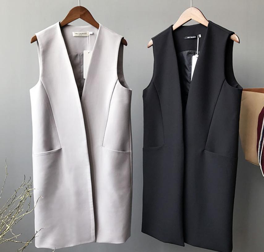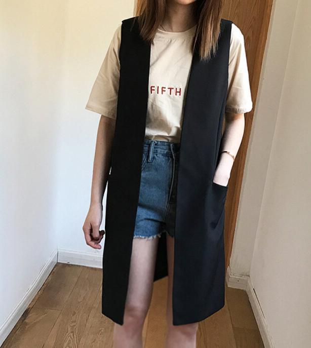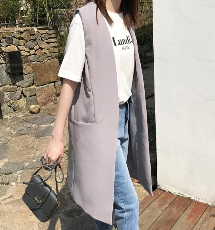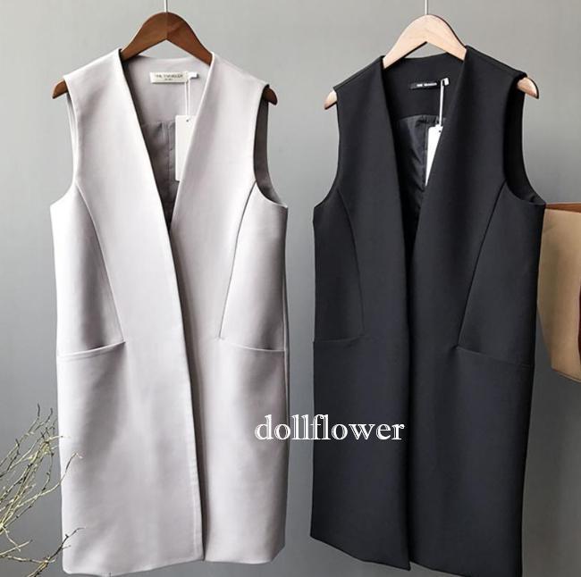 おしゃれ ジレ ロング ベスト 韓国ファッション 重ね着 Vネック [gg-2193]