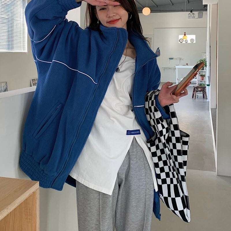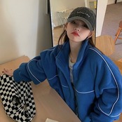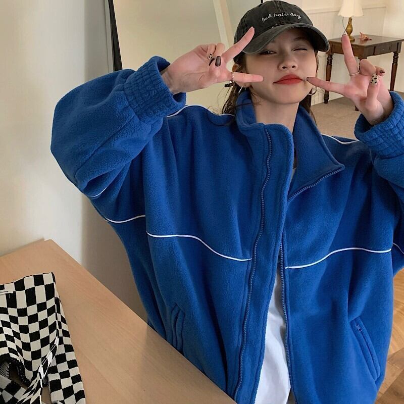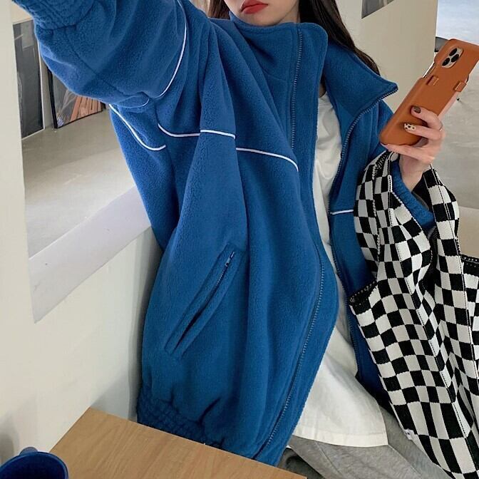 フリースジャケット ブルゾン ブルー 韓国 アウター [gg-2203]