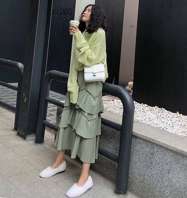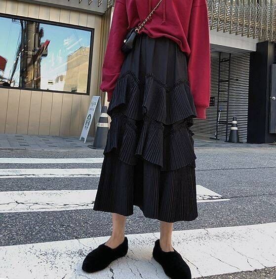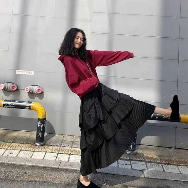 プリーツ ティアード スカート ロング丈 韓国 [gg-2204]
