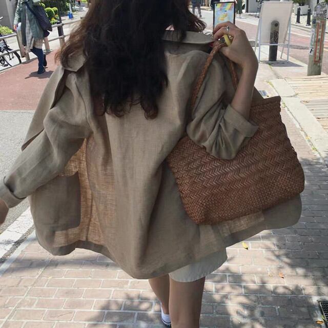 リネン混 オーバー ジャケット 春 アウター 韓国 [gg-2205]