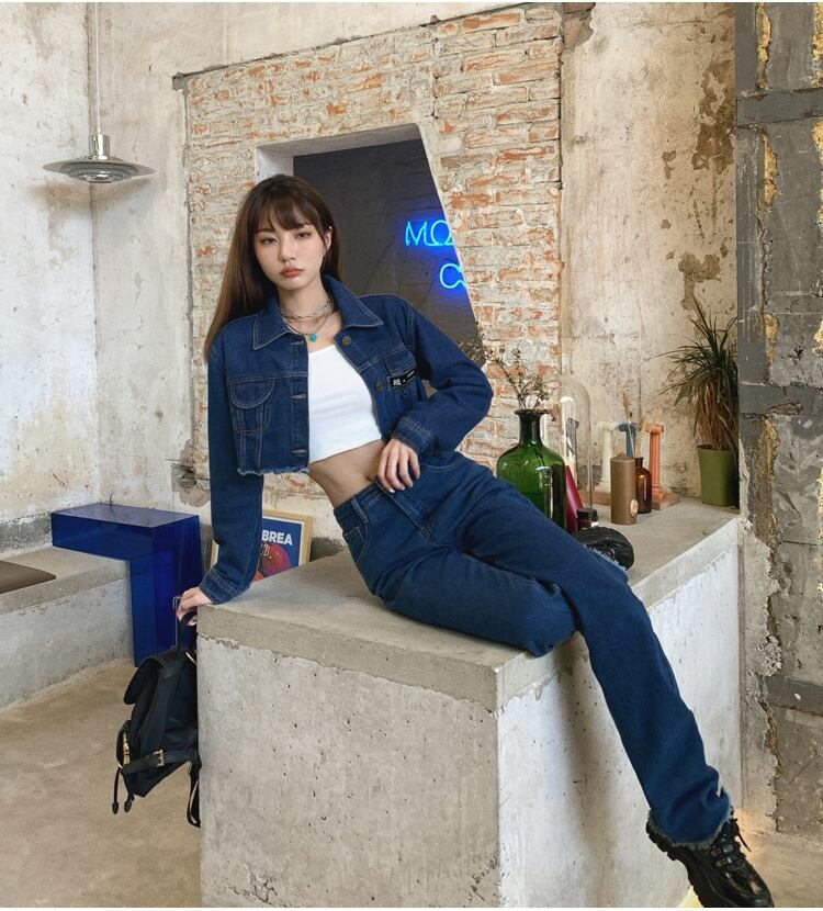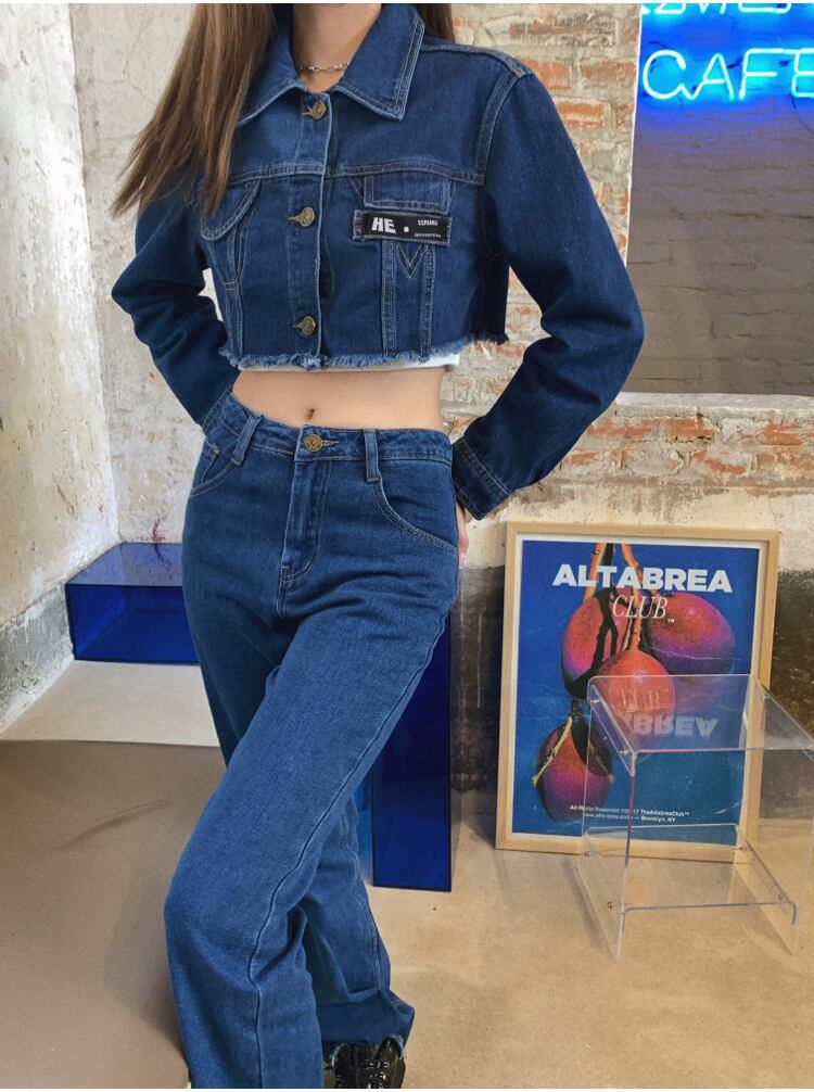 デニム セットアップ クロップド丈 ジャケット×パンツ [gg-2207]