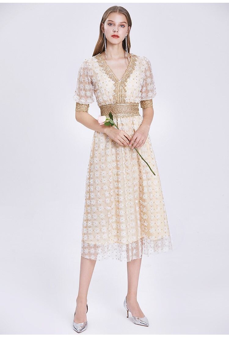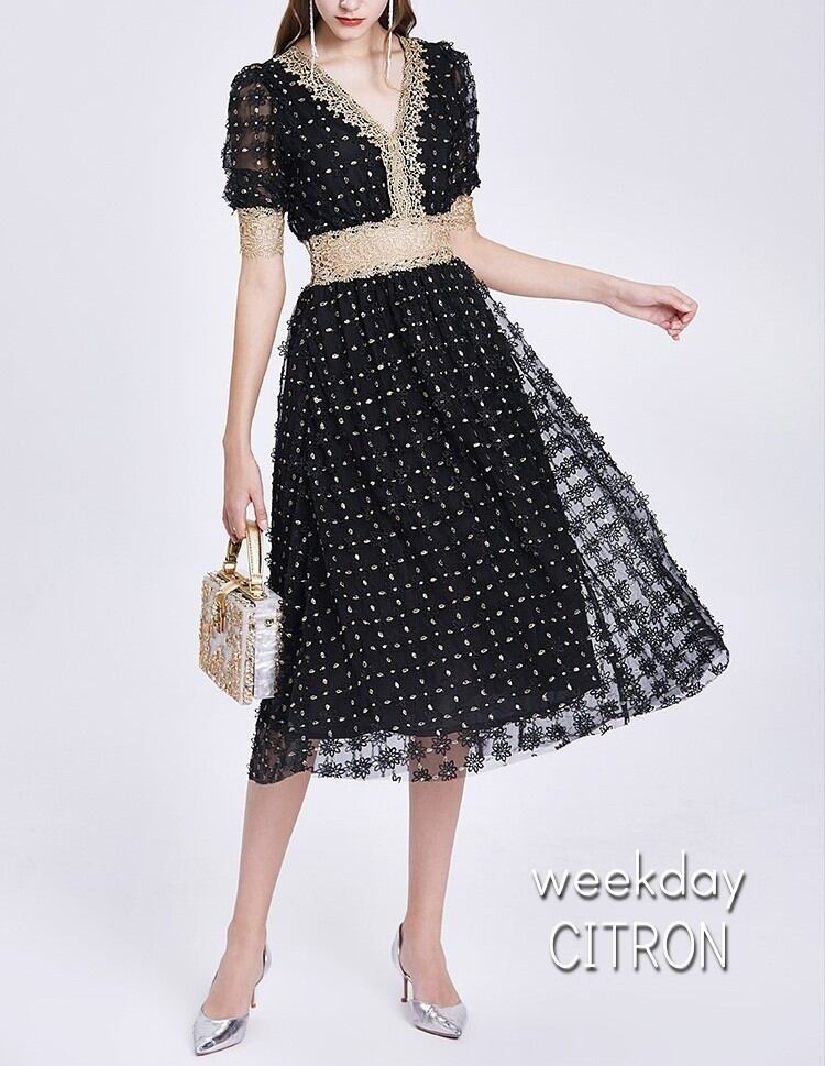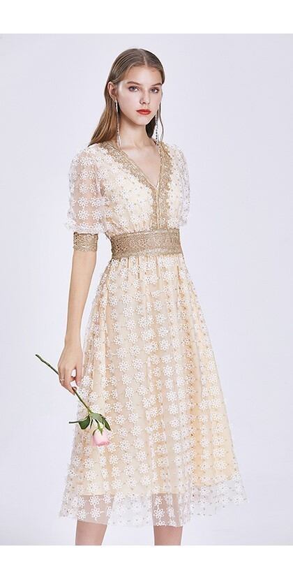 花柄 刺繍 エレガント ワンピース ドレス 韓国 [gg-2210]
